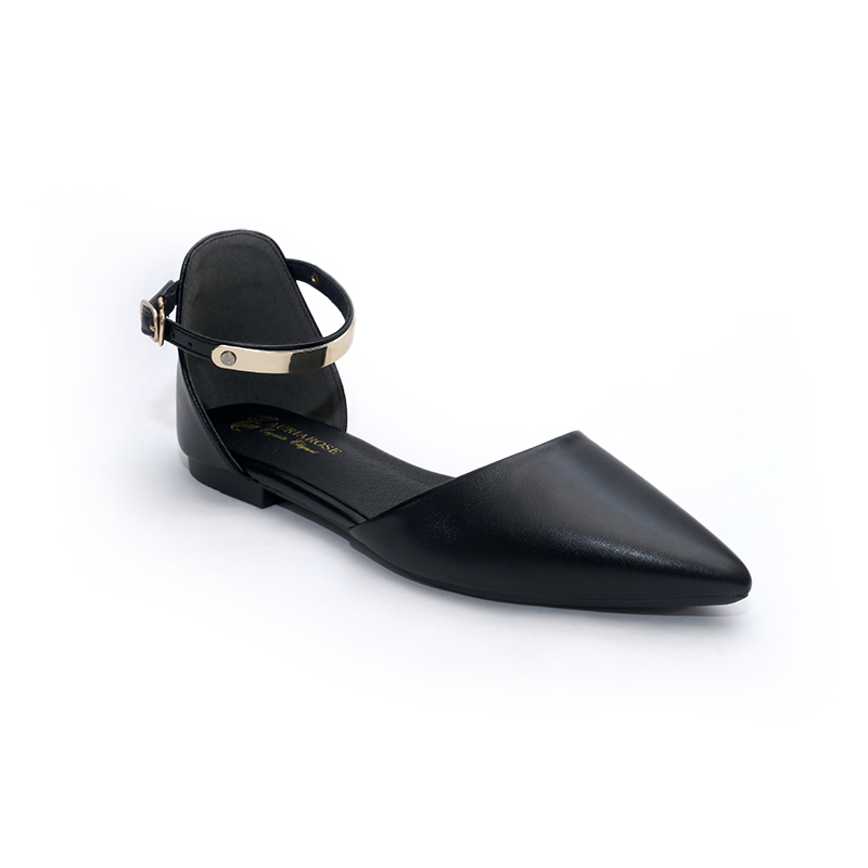 Chic and refined, these pointed-toe pumps feature a sleek ankle strap with a polished gold accent for a touch of elegance.